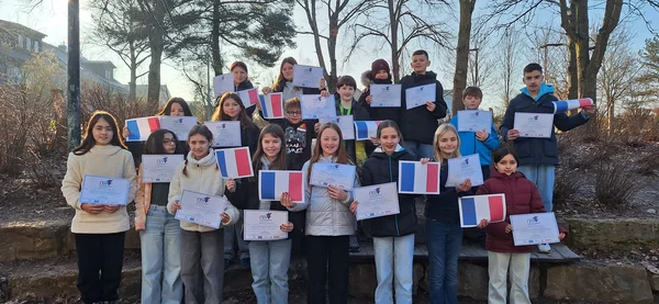 Sichtlich stolz halten sie ihre Urkunden in die Höhe und freuen sich über ihren Erfolg beim französischen Internet-Teamwettbewerb! Die Rede ist von den 24 Sechstklässlern der Französischklasse 6b/c des Hölderlin-Gymnasiums Lauffen a.N., welche zwei Wochen zuvor – am 22. Januar 2025 – anlässlich des Deutsch-Französischen Tages am Internet-Teamwettbewerb langue et cultures teilgenommen haben.